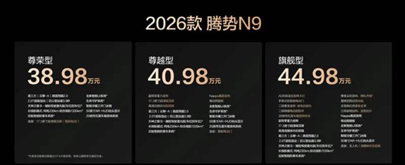 在新能源汽车市场竞争白热化的2025年,腾势品牌以一款集安全、性能、智能与豪华于一身的旗舰suv——2026款腾势n9强势登场。这款定价38.98万元起的大型suv,不仅以“易三方”“云辇-a”等核心技术刷新行业标准,更通过东方美学设计、防晕车系统等差异化创新,让新车亮点更是全面升级。