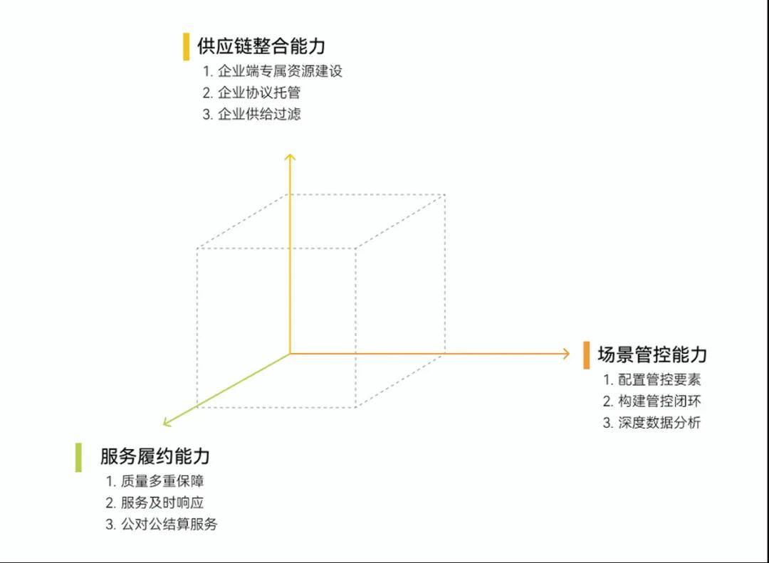 传统服务商偏向于规则制定和内部管控,而企业消费管理的新范式则要打通全链条,特别是基于c端互联网打造全场景供应链资源体系。因此,白皮书中认为服务商需要具备三大核心能力:
