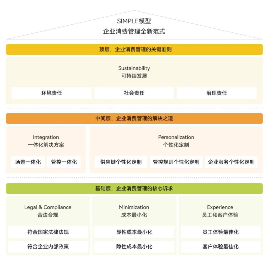 simple模型的推出,是顺应时代的变化,首次确立了企业消费管理的框架,明确了管理的层次和体系,帮助企业实现资源的高效配置与运营效率的飞跃。而这个框架,也将成为未来企业选择消费管理系统的标准,当企业明确自己的目标时,这个模型可以作为帮助选择服务商的标准。